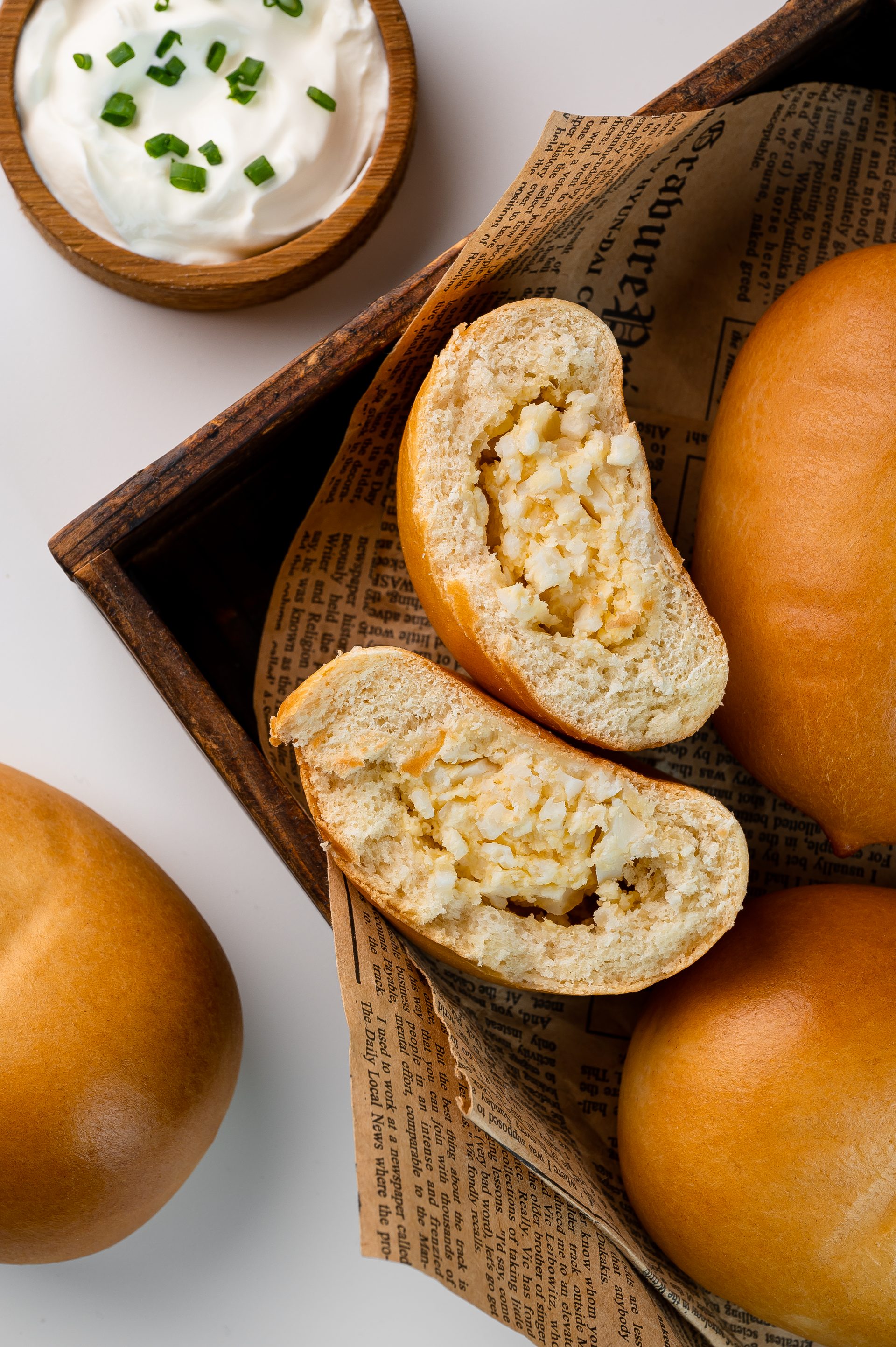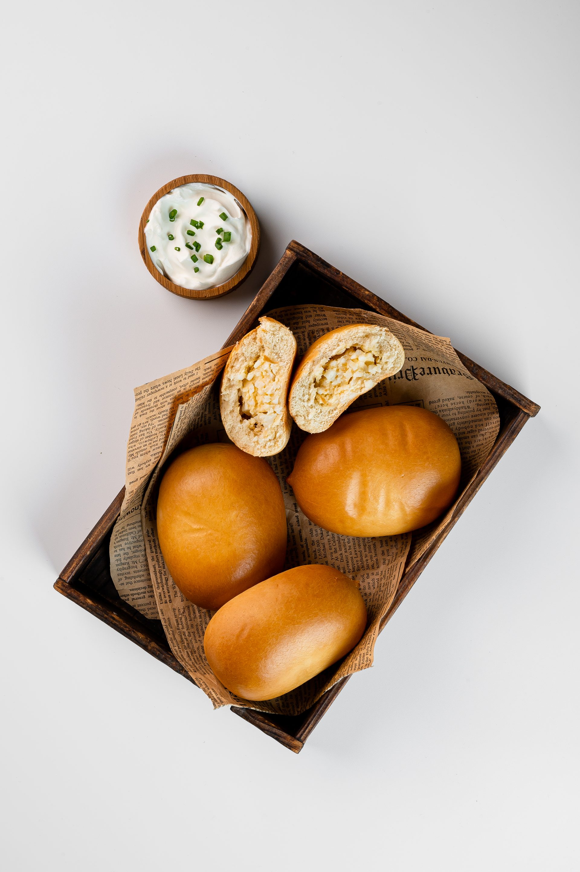 Состав: Тесто, начинка (яйцо куриное вареное, соль пищевая, крупа рисовая, масло сливочное), масло подсолнечное рафинированное дезодорированное.