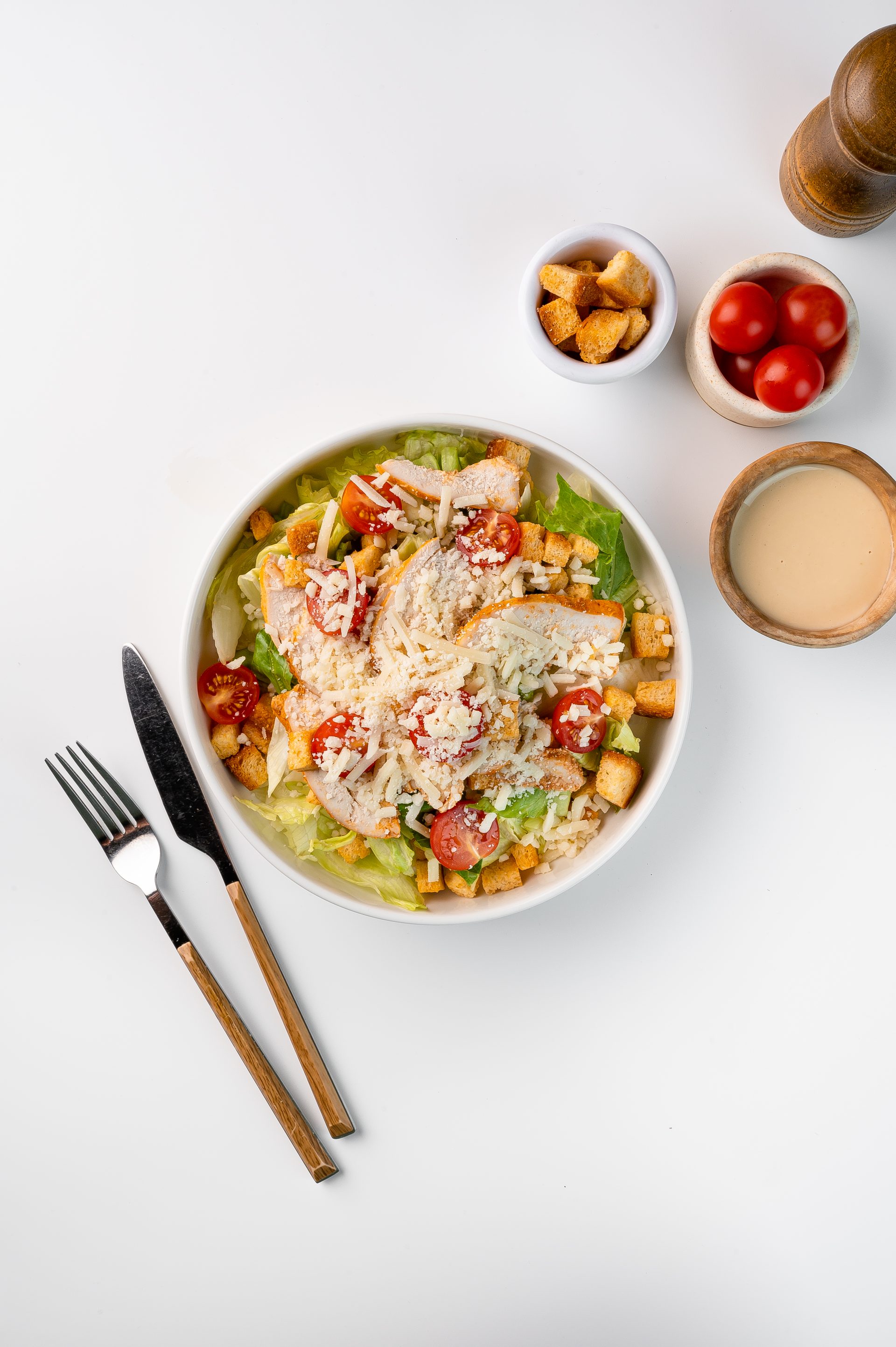 Состав: салат китайский, куриное филе, сыр, соус, сухари.