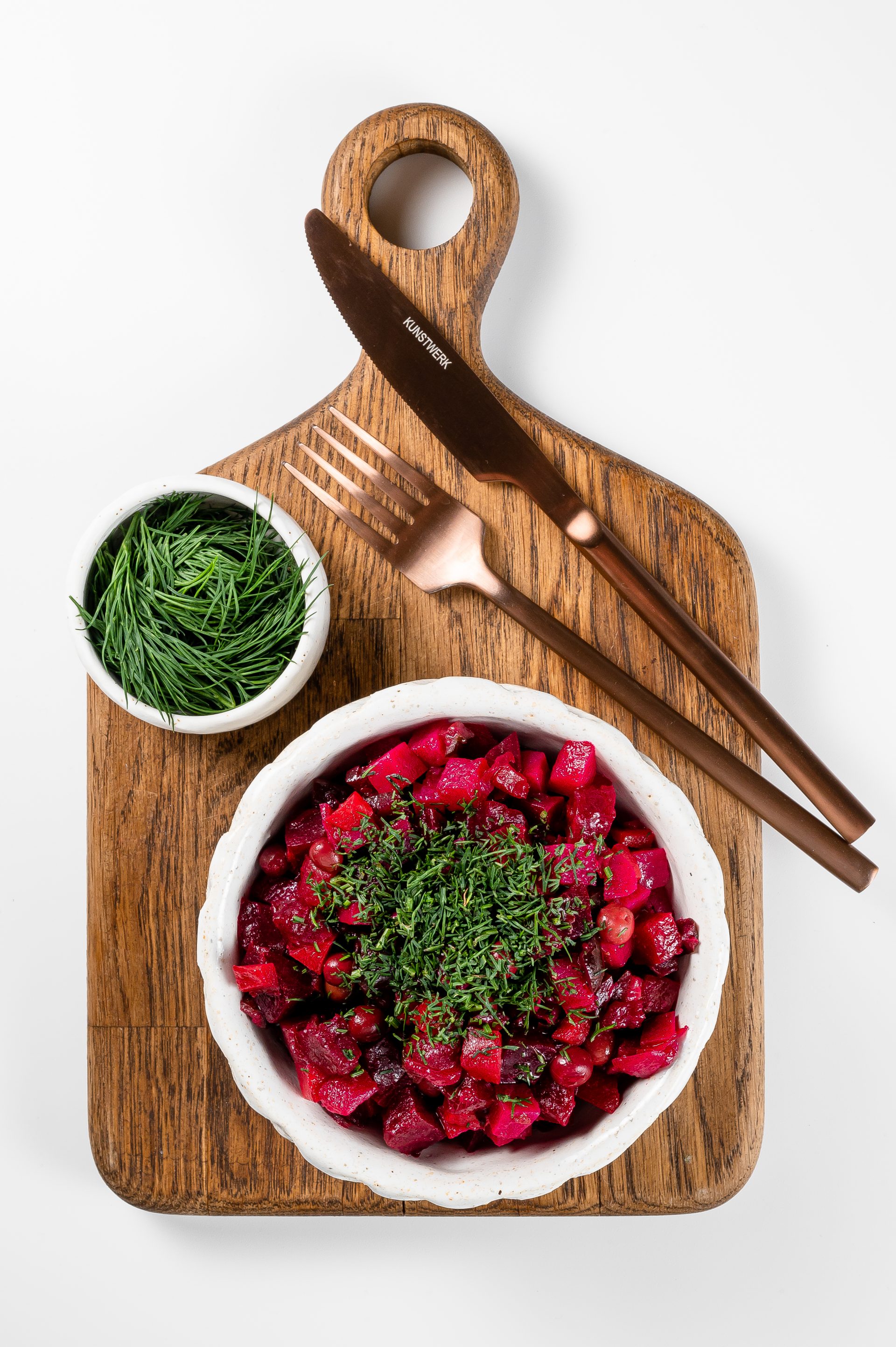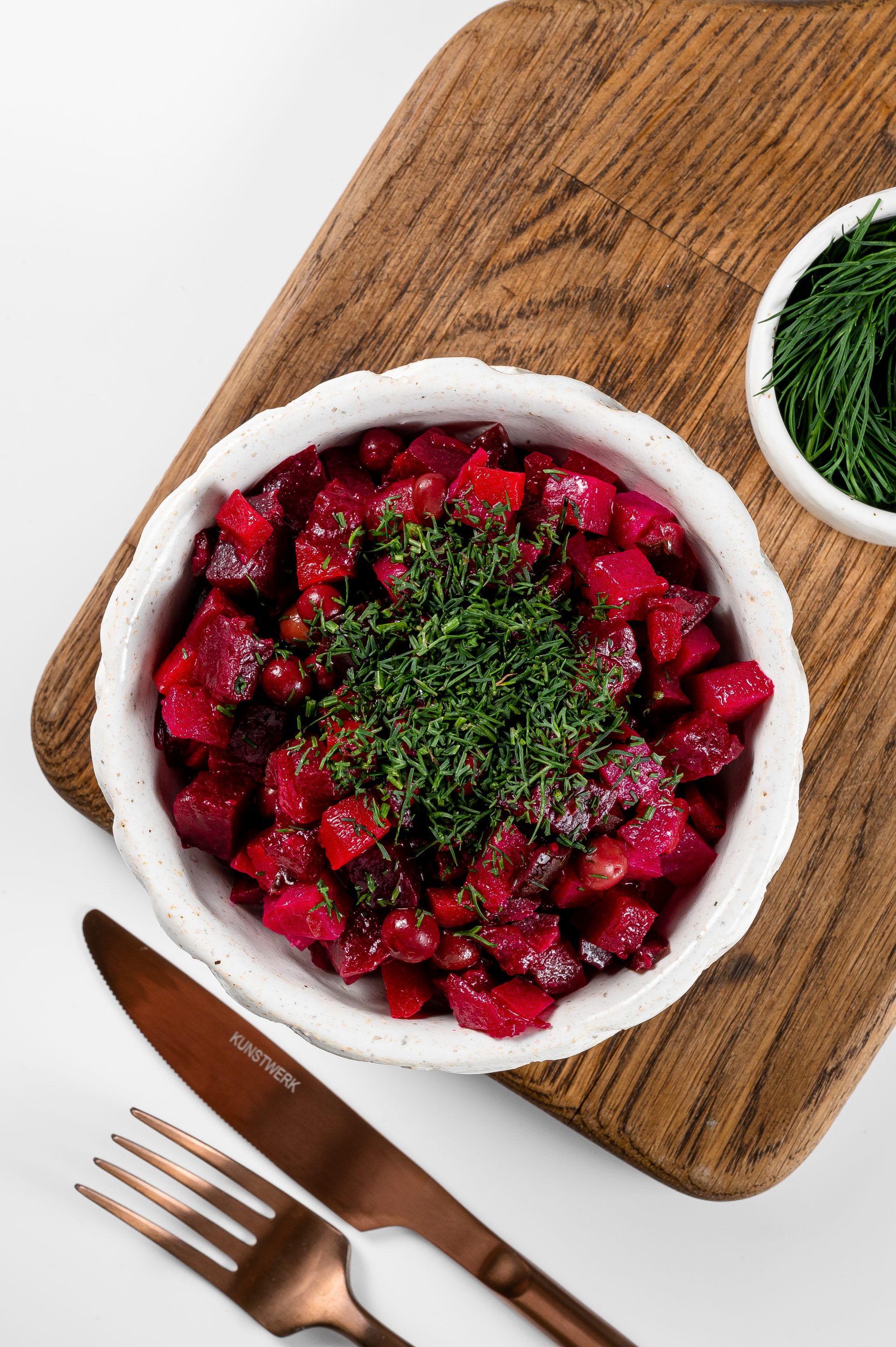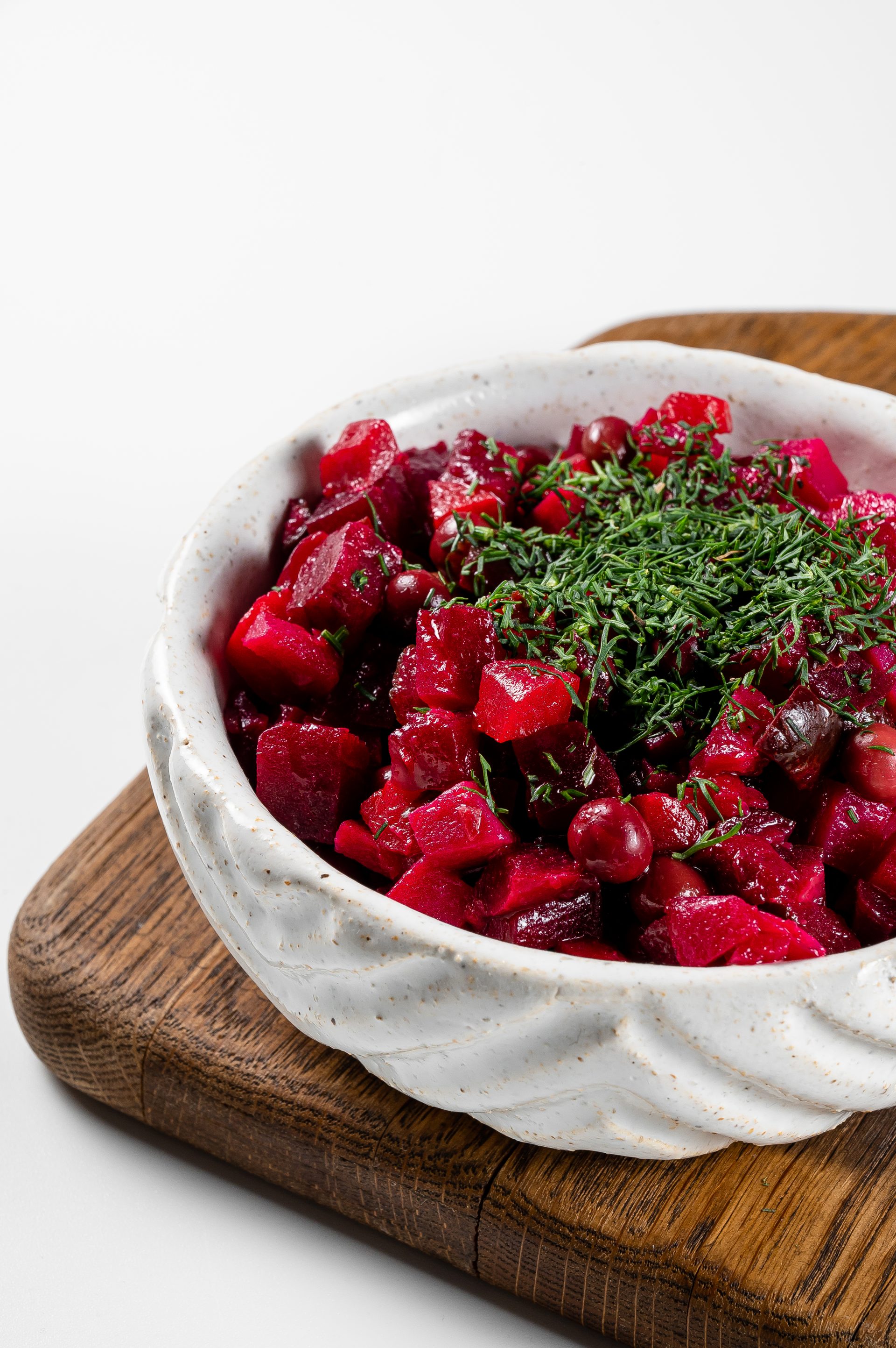 Состав: свекла, картофель, огурцы маринованные, морковь, капуста квашеная, зеленый горошек консервированный, масло растительное, лук зеленый, петрушка, соль перец черный молотый.